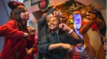 Entre no ritmo da festa divertida e dançante no restaurante Cosmic Ray´s Starlight Café com a presença de ursos polares, elfos e renas.