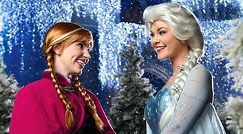 A Rainha Elsa transforma o Castelo da Cinderela em palácio de gelo com emocionante apresentação ao lado da Princesa Ana, do boneco de neve Olaf e do homem das montanhas Kristoff.